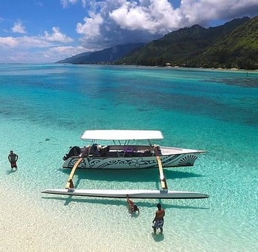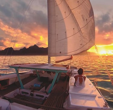 Un paseo privado al atardecer por las aguas de Bora Bora.